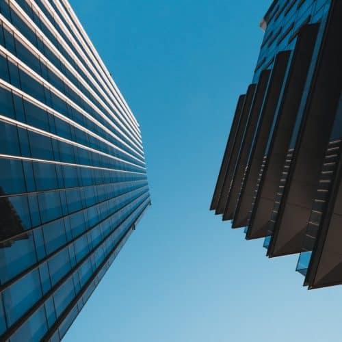 blue and black high rise building